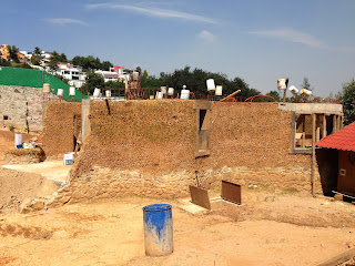 Hace tres días quitamos la carpa que cubría toda la obra. Por primera vez veo la obra con sus colores naturales y con el techo descubierto.  ¡¡hasta parece casa!!: